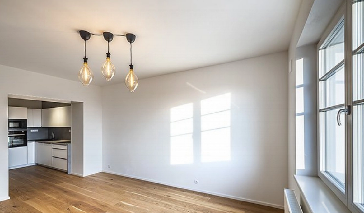 The partially furnished apartment 2+kt layout and area of 61 m2 is located on the 4th floor of a building in the dynamically developing part of Prague 3 – Vinohrady. The flat consists of a modern living room connected to the kitchen and dining area, bedroom with a double bed and a large wardrobe and a bathroom with a toilet.