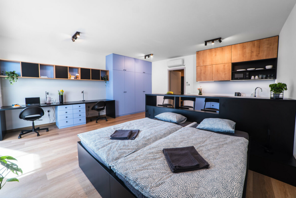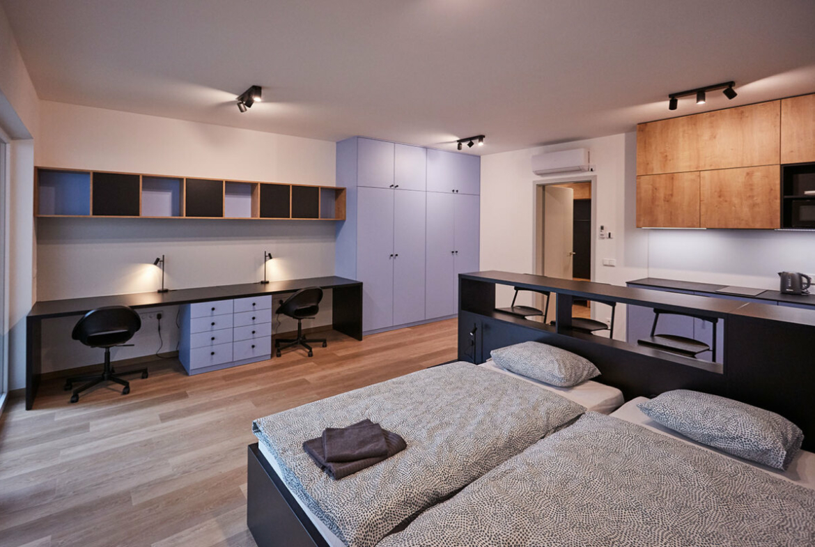We would like to offer modern, furnished and sunny apartment (40m2) with 1+kt layout is located in the center of Olomouc. The studio consists of a modern room connected to the kitchen and dining area. The accommodation is located in a beautiful, private house.