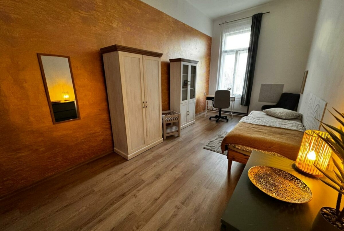 We would like to offer furnished private room (12m²) for long term rent with excellent transport links in Ostrava centre – Nadrazni street. This is the ideal solution for students or young professionals. The accommodation is located in a beautiful private house. The location is great specially for those, who like peace and at the same time to be close to all corners of the city center.