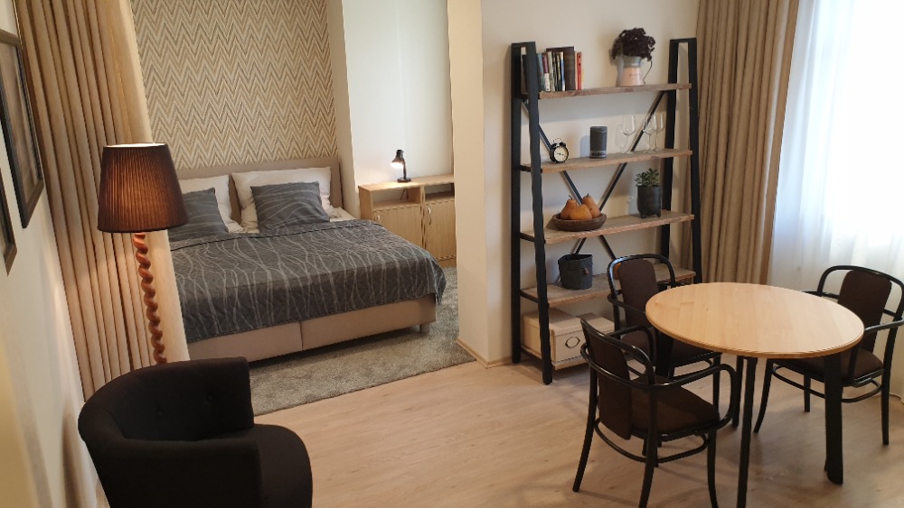 The studio for rent has excellent location in the centre of Brno. Suitable for 1-2 persons, fully equipped with a double bed, wardrobe, a fully equipped kitchen unit, a dining area, a bathroom with a shower and a WC.